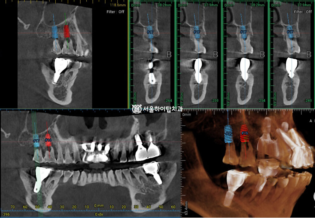 ▪️상악동이나 신경관과의 거리 확보 여부를 확인하며
