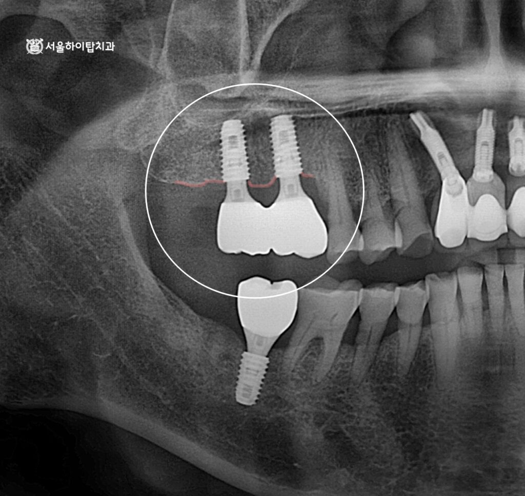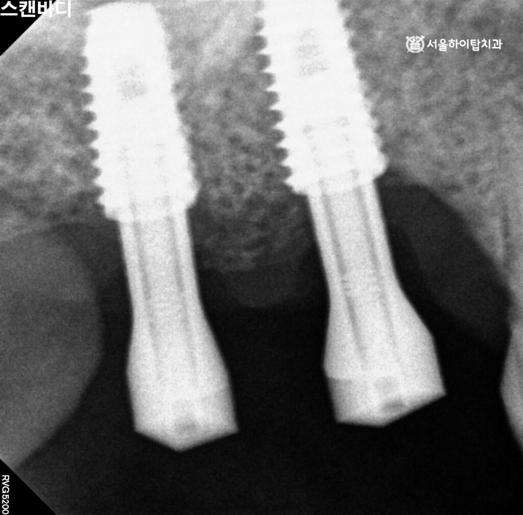 사진에서 보듯, 임플란트는 치조골에 안정적으로 자리 잡아 견고한 지지를 제공하며,