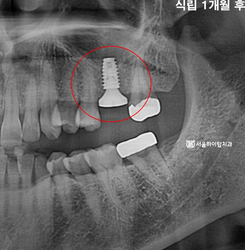 임플란트가 안전하게 식립된 모습을 확인할 수 있습니다.