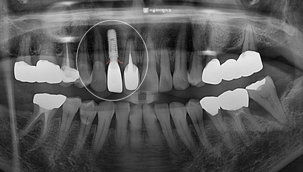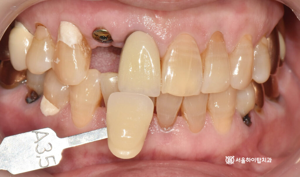현재 앞니 1개를 상실했으나 인접치의 위치 변동이 없기 때문에,